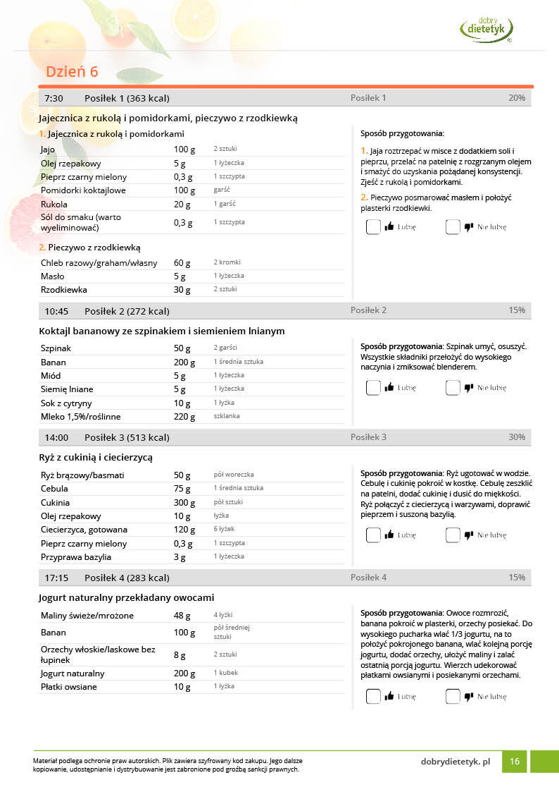w formie precyzyjnych jadłospisów wielodniowych (na każdy dzień miesiąca jest opracowany osobny jadłospis). Tutaj nie musisz zastanawiać się co zjeść każdego dnia, gdyż będziesz mieć dokładnie wszystko rozplanowane.