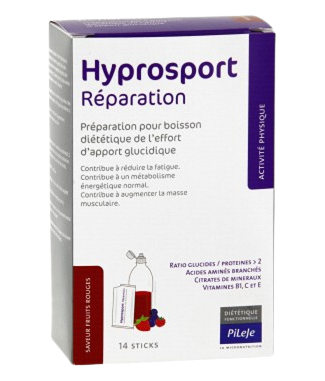 Hyprosport Naprawa to preparat do sporządzenia dietetycznego napoju energetycznego zawierający węglowodany. Witamina C przyczynia się do zmniejszenia zmęczenia i do prawidłowego metabolizmu energetycznego. Białka mają wpływ na zwiększenia masy mięśniowej. Rekomendowany do suplementacji po każdym treningu, szczególnie po treningu intensywnym lub długotrwałym, po wznowieniu treningów po długiej przerwie spowodowanych urazem lub kontuzją. Przeciwwskazania: produkt przeznaczony jedynie dla dorosłych. Nie zawiera glutenu.