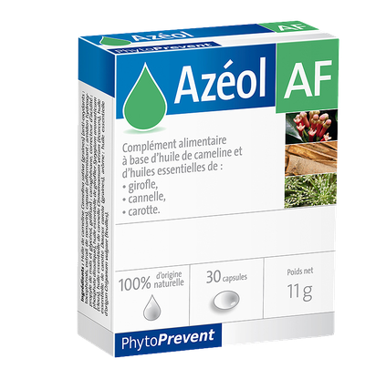 Azeol AF jest suplementem diety opracowanym na bazie oleju z lnicznika siewnego (Camelia sativa) i specjalnej kompozycji olejków eterycznych z goździka, cynamonu i nasion marchwi. Zastosowany w produkcji, opatentowany proces Quality Silver, gwarantuje maksymalną jakość i trwałość oleju w okresie przydatności do spożycia.